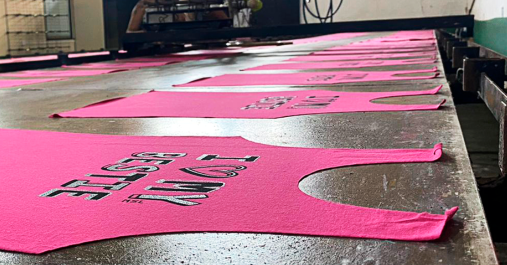 Temos uma estrutura voltada para garantir a exclusividade das estampas, onde todo o processo pré e pós silk é executado internamente: impressão de fotolitos, revelação de matrizes serigráficas, prensa, polimerização entre outros.